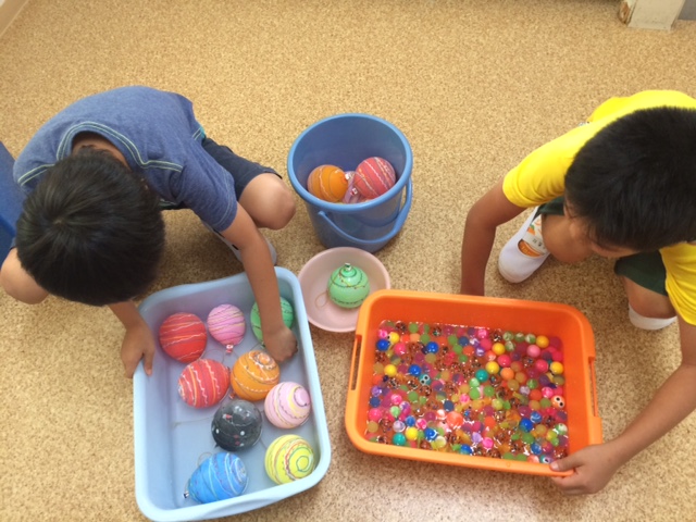 下記の画像は夏祭りを実施してヨーヨー釣りとスーパーボールすくいをした時の写真です。
