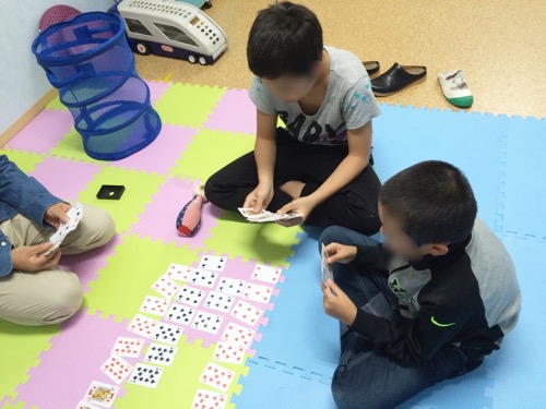 今日はトランプで7並べをしました。